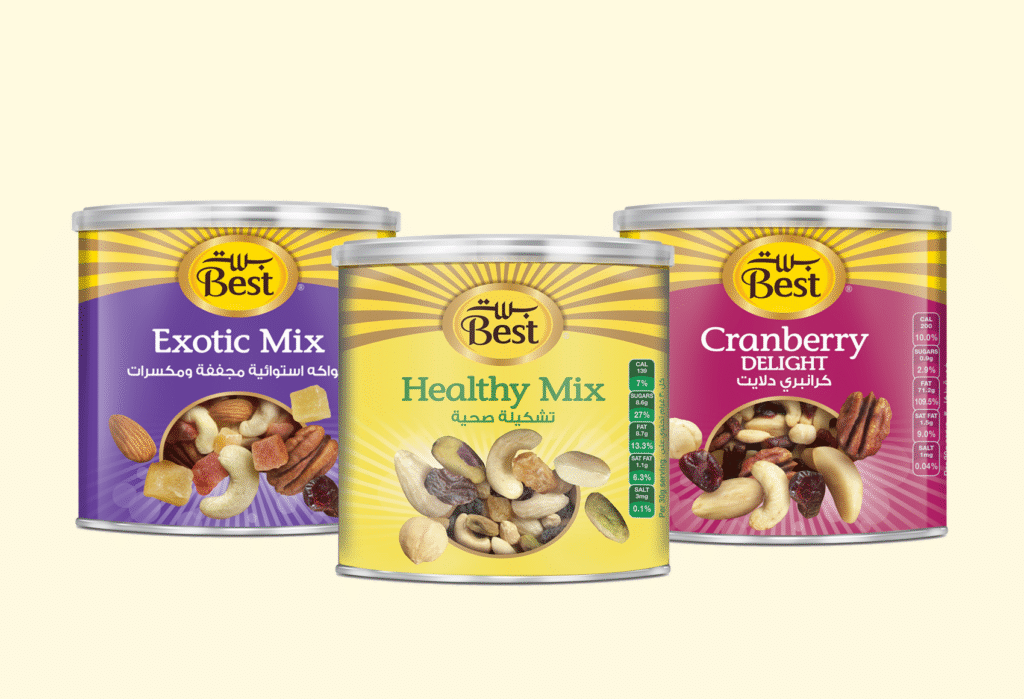 Best Mix Range, a gourmet mix of nuts and dried fruits in assorted flavors, offering our consumers delicious snacks.